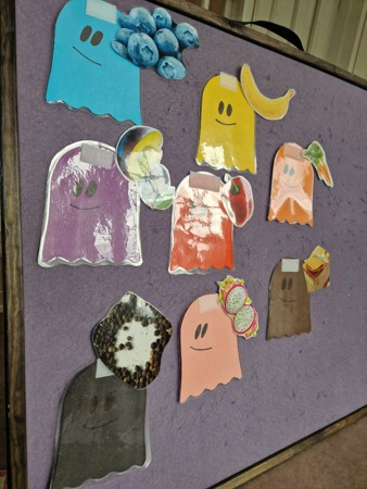 I november vil barna få presentert en ny fortelling, "Da spøkelsesbarna endret farge". Den er knyttet opp mot temaet vi jobber med i år som er farger. Kort fortalt spiser spøkelsene ulike matvarer som gjør at de skifter farge, mye mulig det blir ulike smaksprøver etterhvert for barna....