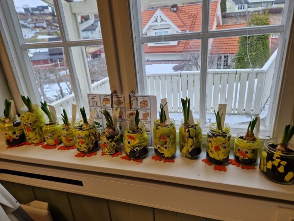 Alle har fått vært med på påskeverksted hvor de har laget blomster/lykter som de har malt og dekorert, og malt og pyntet egg laget av leire.