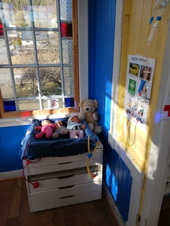 Vi har også hatt beredskapsuker. Der har vi lekt, snakket og reflektert sammen, hatt samlinger om de ulike temaene som førstehjelp med barn og tannhelse. Vi har hatt med Henry i ulike samlinger og på tur, øvd på førstehjelp, bl. a stabilt sideleie, plastring og bandasjering. Med tannhelse har vi snakket om mat som er bra for tennene og viktigheten med å pusse tenner, ikke minst.