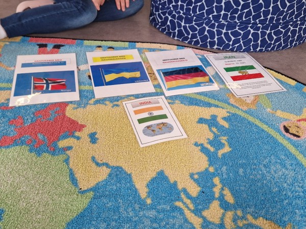 FN dagene har gått til å bli kjent med de ulike nasjonalitetene vi har på avdeling, vi har snakket om fargene til de ulike flaggene og sett på globusen hvor landene befinner seg. Vi så hvor Norge var og noen av landene var det lenger avstand til enn andre.