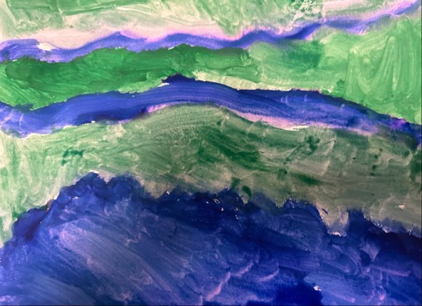 "jeg elsker verdensarv", "Birkeland forsket på nordlyset?", "den hvite atmosfæren gir også energi". Etterpå hoppet vi strikk og slengtau, danset nordlysdansen og malte nordlyset. En fin avslutning på verensarvopplegget.